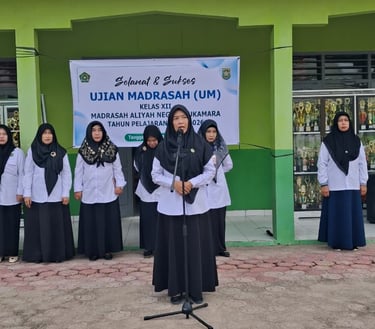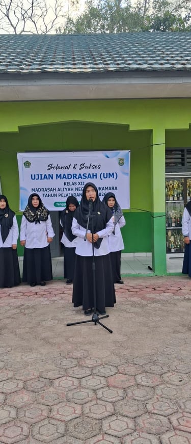 Sukamara, 02 Maret 2026 — Kegiatan Ujian Madrasah bagi siswa kelas XII Tahun Ajaran 2025/2026 resmi dibuka di lapangan utama MAN Sukamara. Acara pembukaan berlangsung khidmat dan dihadiri oleh Kepala MAN Sukamara, Kasi Pendis Kemenag Kabupaten Sukamara, Pengawas Madrasah, dewan guru, staf tata usaha, serta seluruh siswa kelas XII yang akan mengikuti ujian sebagai bagian dari evaluasi akhir pendidikan di madrasah.